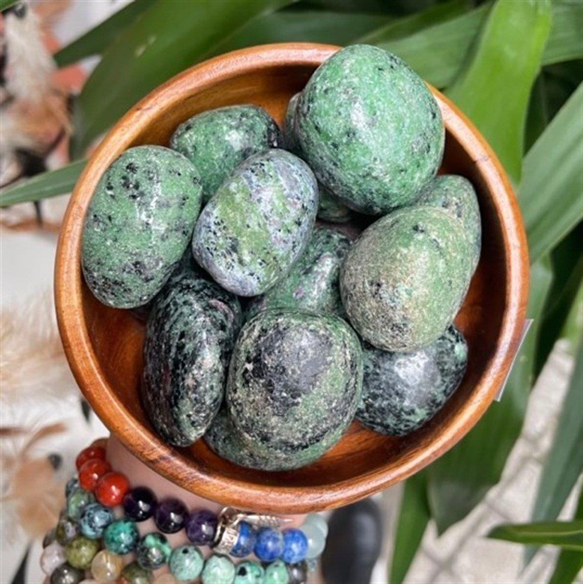 • Yeşil Zoisit büyüme ve doğurganlığa ilham verirken, Ruby tutku ve canlılık getirir. Birlikte, enerjisi anı yaşamayı ve tüm korkuları salıvermeyi kutlayan bir taş yaratırlar.