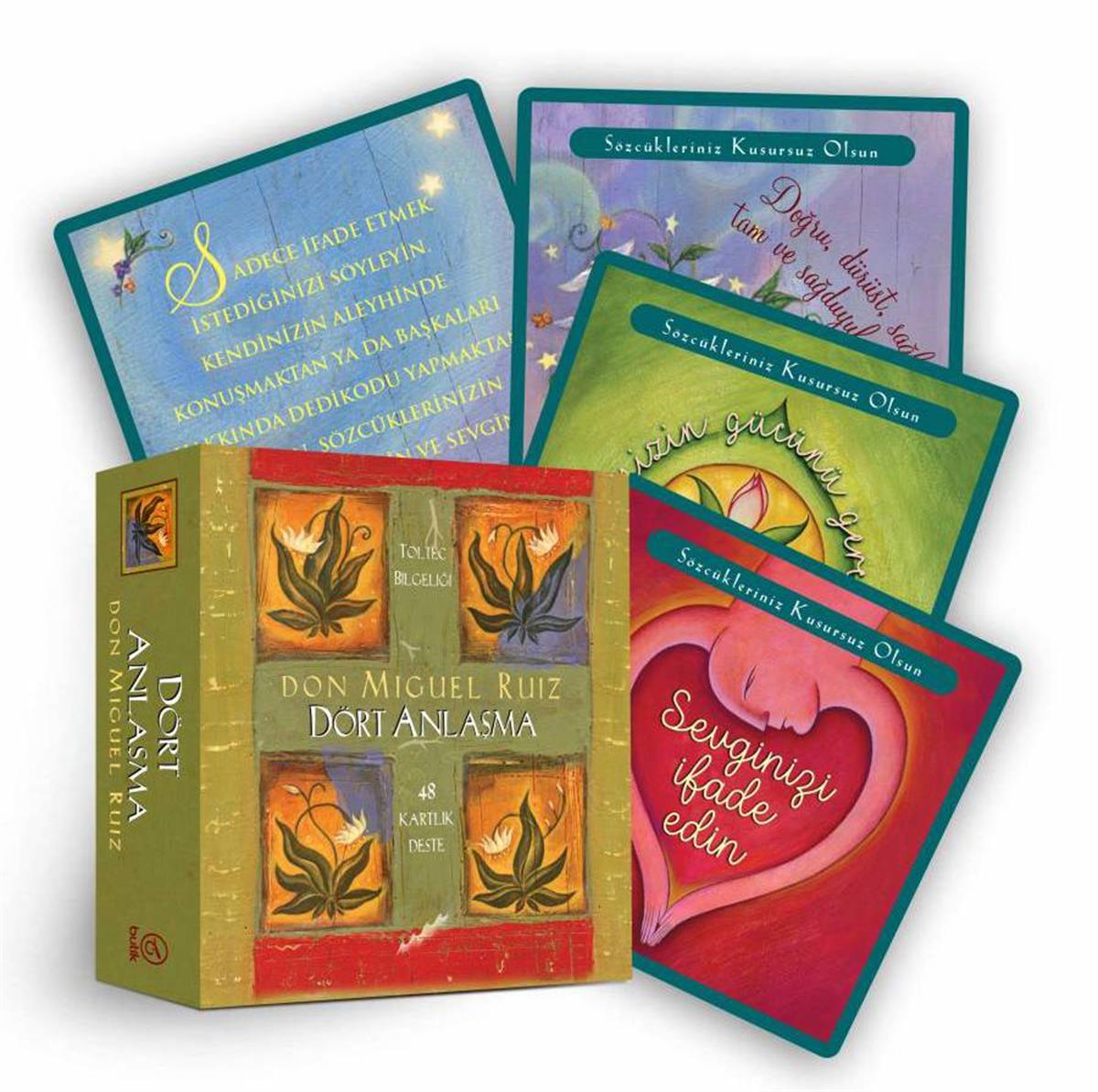 Don Miguel Ruiz’in efsanevi kitabı Dört Anlaşma’nın kartları olan bu kartlar, kişisel özgürlüğe ve hakiki mutluluğa ulaşmak için gerekli basit, ama güçlü davranış kodları sunar. Her bir anlaşmaya karşılık gelen on iki kart vardır: