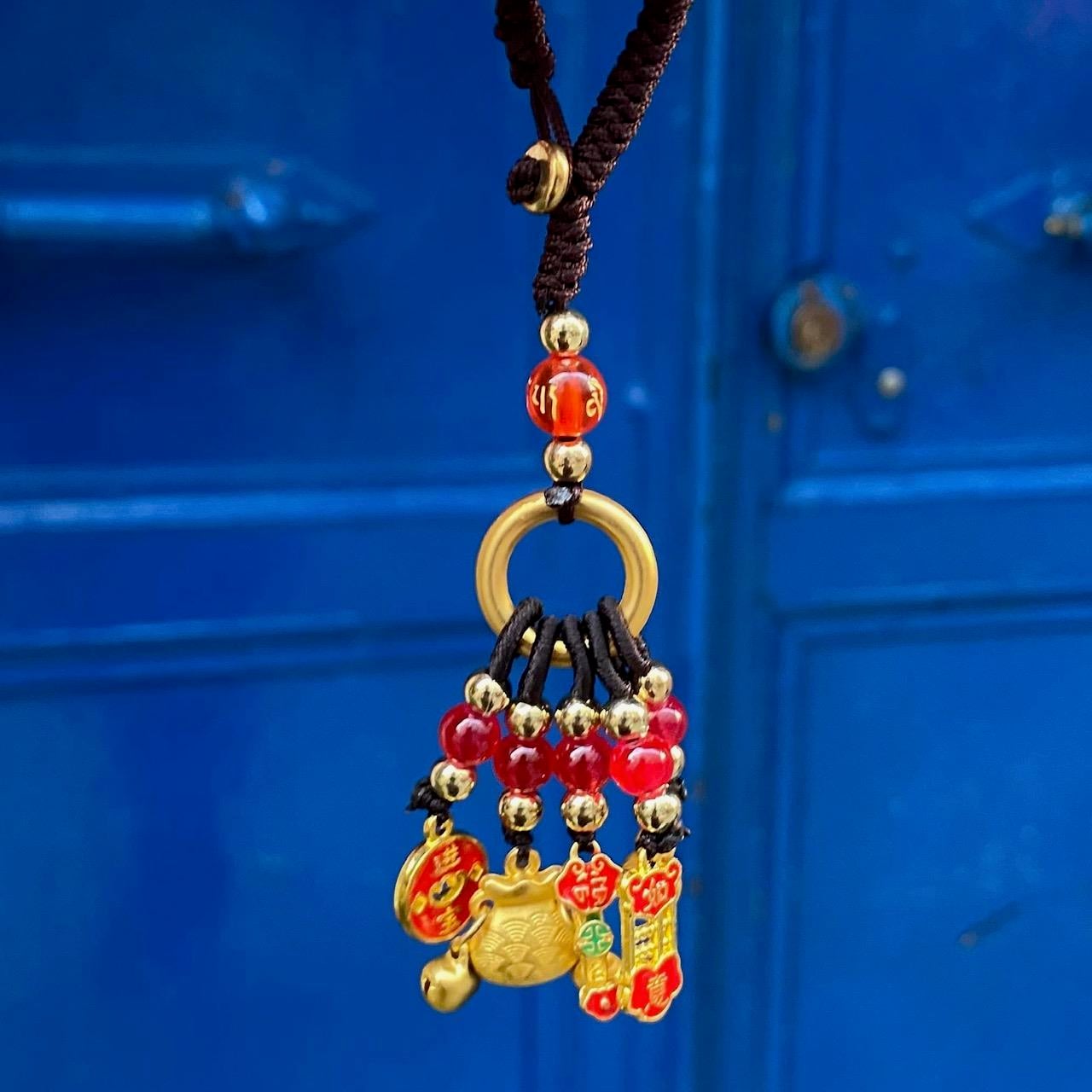 Bu anahtarlıkta FengShui sistemine ait bereket ve şans sembolleri yer alıyor.