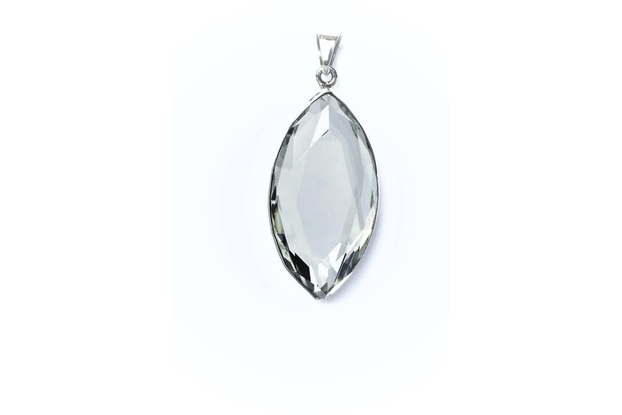 Arkası 925 ayar gümüş, larentia kesimli, yuvarlak aynalı kolye ucu.