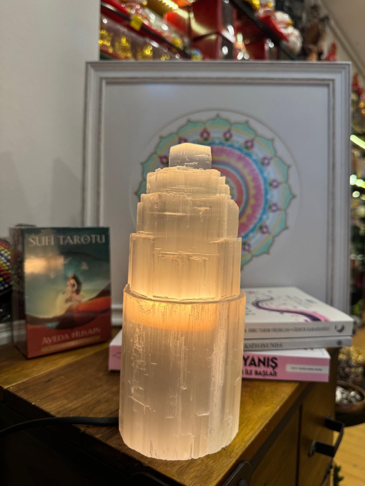 Doğal Selenit Kristal Lamba Katmanlı Kule