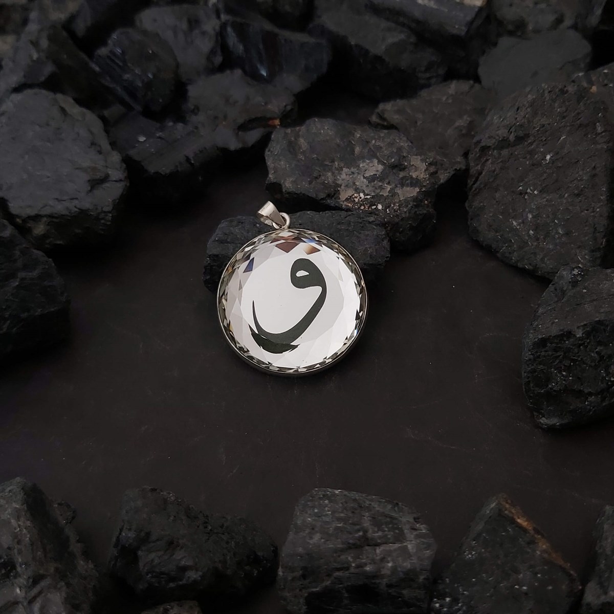 Arkası 925 ayar gümüş, larentia kesimli, yuvarlak aynalı Yaşam Çiçeği kolye ucu.